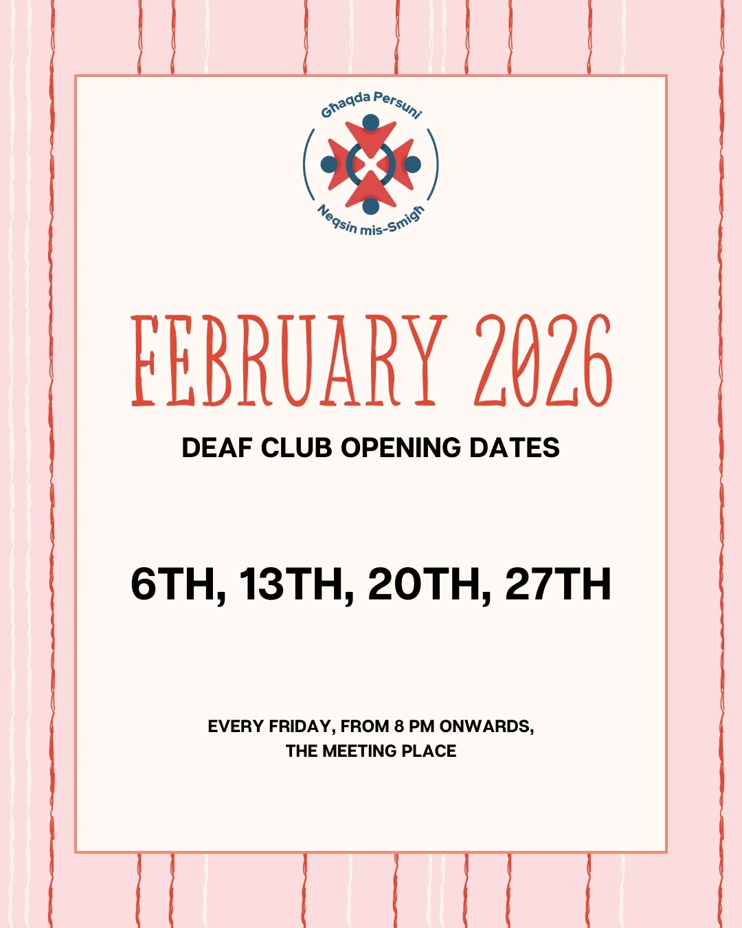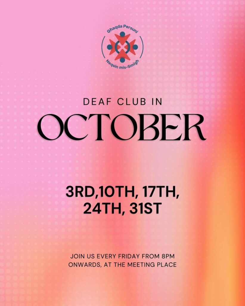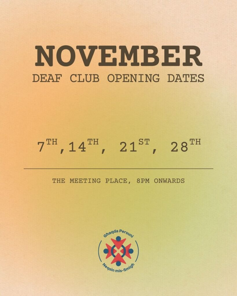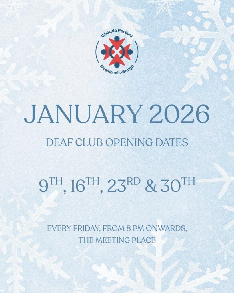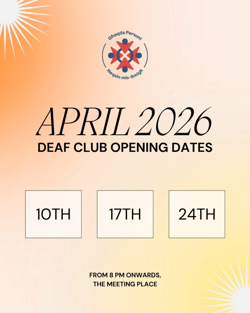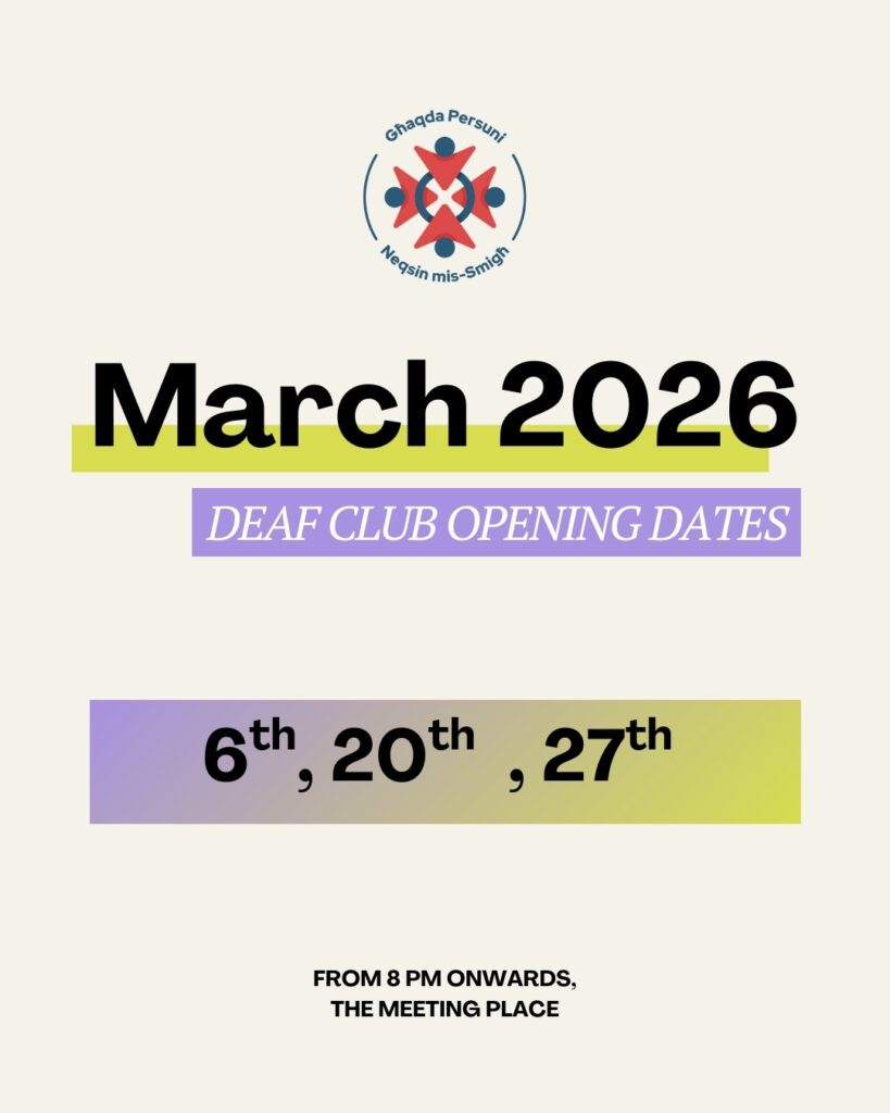 Deaf Club Updates Below, you’ll find information about the opening days and times of the Deaf Club located at The Meeting Place, Dom Mintoff Street, Marsa.📍 View the location on the map