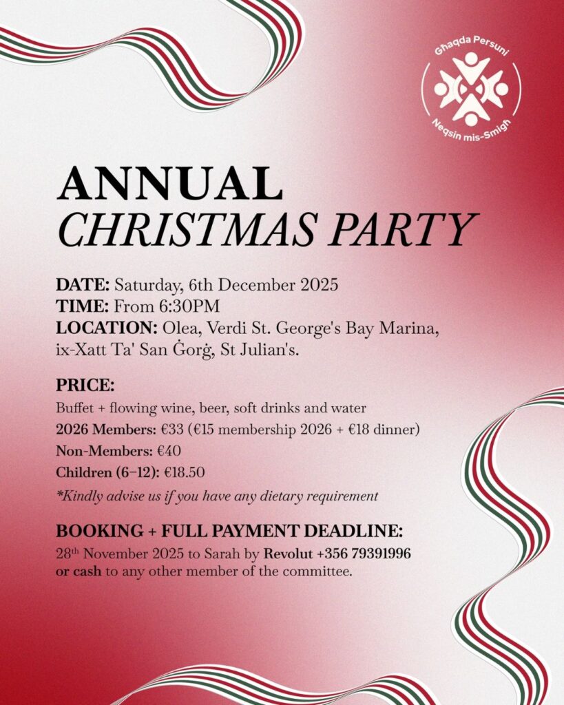 Activities CHRISTMAS PARTY COMINO SUMMER BBQ Summer BBQ by Deaf People Association Malta Pasta Night Pasta Night by Deaf Youth Association Malta (DYAM) on 21st February 2025Click Here for LSM video Pizza Night Pizza Night by Deaf People Association Malta on 14th March 2025More information coming soon